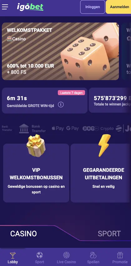 IgoBet officiële casino website met gokkasten en live spellen in Nederland