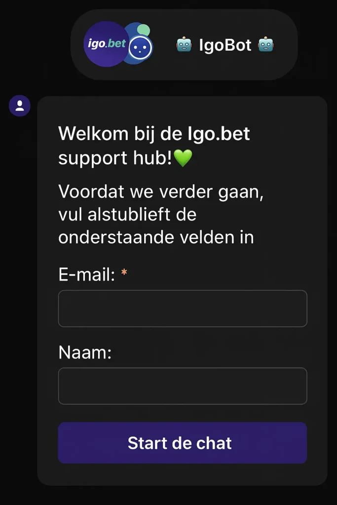 Onze medewerkers staan altijd voor je klaar om je te helpen met eventuele vragen die je hebt. Er zijn verschillende manieren waarop je in contact kunt komen met deze medewerkers. De snelste manier is door gebruik te maken van de IgoBet live chat optie, hiermee zul je meteen antwoord krijgen op eenvoudige vragen. Indien je echter een grotere vraag hebt of als je een opmerking over het platform wilt geven, kun je ons best even een mailtje sturen. Via de klantendienst e-mail zul je binnen 1 tot 3 dagen een antwoord mogen verwachten. We doen ons best om alles zo snel mogelijk te verwerken.